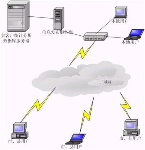 功能:用于集中存放省市級大客戶檔案數(shù)據(jù)及營業(yè)、帳務(wù)數(shù)據(jù),并根據(jù)應(yīng)用設(shè)計,對數(shù)據(jù)分類統(tǒng)計匯總。