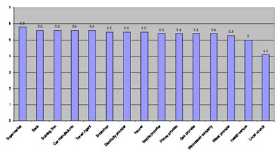 目前全球絕大多數(shù)的客戶體驗都極為冷漠。我對歐洲所作的調研顯示人們對所有行業(yè)企業(yè)的情感依賴性相當接近(2)。500位消費者評出了自己的最佳客戶體驗,該調研橫跨多個行業(yè)。他們對供應商作了如下評價(等級從0-7):