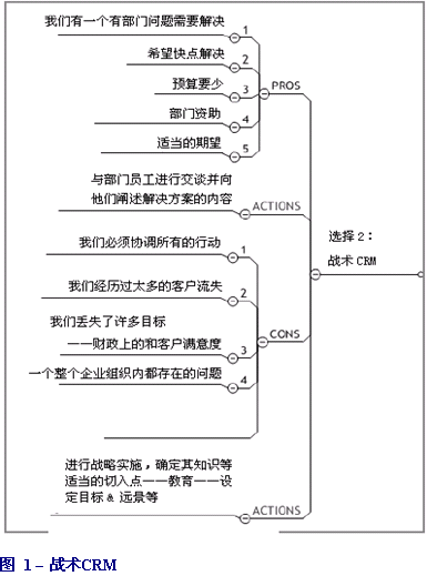 換言之,它是一種戰(zhàn)術性的還是戰(zhàn)略性的需求?許多企業(yè)喜歡在一段時間內(nèi)解決某個問題或困難。然而這種戰(zhàn)術性的方式很難為企業(yè)帶來競爭上的優(yōu)勢,盡管它有可能會改善部門的效率。究竟我們要在CRM之路上走多遠?想要知道答案的話可以看一下圖1。從頭開始,問問自己:它是一個具有明確定義和目標范圍的部門需求嗎?如果真是這樣,那么預算也應該相當有限,因為其它業(yè)務部門決不會遷就。然而你很可能會發(fā)現(xiàn)你的部門問題就是企業(yè)與客戶及市場脫離的征兆。如果情況的確如此,那么你就要好好地努力深化CRM并取得更為廣泛的支持——尤其是CEO,因為你有許多關于客戶選擇的問題要有賴于他。