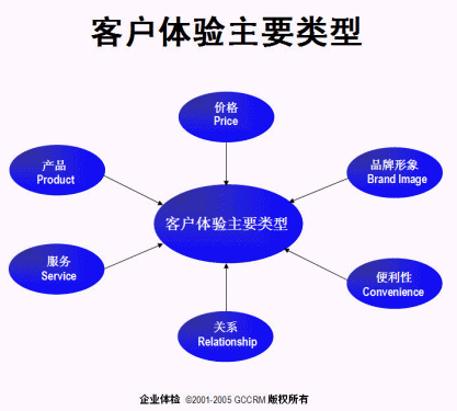 一家企業(yè)(或一個(gè)品牌)可以直接或間接讓客戶體驗(yàn)的,主要類別為產(chǎn)品、服務(wù)、關(guān)系、價(jià)格、便利性、品牌形象。在不同行業(yè),對(duì)不同目標(biāo)市場(chǎng)與客戶,每種類別的重要性各不一樣。但最終客戶體驗(yàn)的好與壞都離不開(kāi)這些因素,亦是客戶為什么光顧(或不光顧)的原因(見(jiàn)圖三、客戶體驗(yàn)主要類型)。