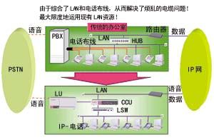 對于全部采用IP PBX的企業(yè),在完成數(shù)據(jù)網(wǎng)布線的同時,也等于完成了電話網(wǎng)的布線,可大大節(jié)省布線成本,從而解決了繁雜的電纜問題(圖一)。