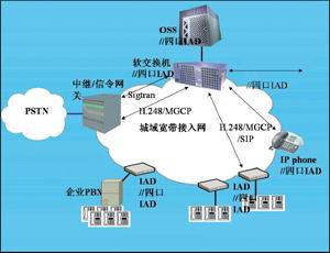 本地軟交換通過中繼/信令網(wǎng)關與PSTN互通,用戶接入終端形式通常有IAD(集成接入設備)和IP phone。IAD提供普通電話POTS接口,容量從單門到幾百門。IAD根據(jù)容量可以放置在用戶室內(nèi)、樓道或專用機房里。IP