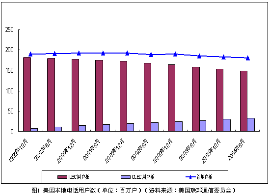 就整體而言,美國本地電話用戶總量穩(wěn)中有降,移動(dòng)通信的替代作用開始顯現(xiàn)。截止到2004年6月,包括住宅和商業(yè)用戶,美國本地電話用戶總量達(dá)到1.81億戶。但與3年前相比,美國本地電話用戶數(shù)量實(shí)際減少了近1200萬戶。與此同時(shí),移動(dòng)用戶數(shù)量迅速增長。截止到2004年6月,美國移動(dòng)電話用戶數(shù)比上年同期增長13%,達(dá)到1.673億戶,基本接近固定電話用戶的數(shù)量。