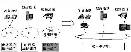 數(shù)據(jù)、語(yǔ)音和視頻是三種主要通信手段。與數(shù)據(jù)通信網(wǎng)絡(luò)和視頻通信系統(tǒng)的發(fā)展趨勢(shì)一脈相承,VoIP建設(shè)是對(duì)傳統(tǒng)語(yǔ)音通信系統(tǒng)的IP化改造。