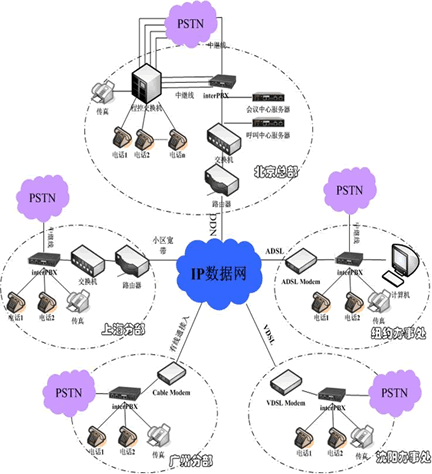 北京正有公司為企業(yè)專門設(shè)計(jì)了一套interPBX解決方案,利用企業(yè)自有的數(shù)據(jù)網(wǎng)構(gòu)建覆蓋整個(gè)企業(yè)的VPTN網(wǎng)絡(luò)電話系統(tǒng),該套系統(tǒng)具備與傳統(tǒng)PSTN電話網(wǎng)絡(luò)實(shí)現(xiàn)無縫連接的能力,在不影響工作效率的前提下達(dá)到降低通話費(fèi)用的目的,同時(shí)可以完成企業(yè)所需要的其它增值服務(wù)功能,如電話會(huì)議、呼叫中心等。