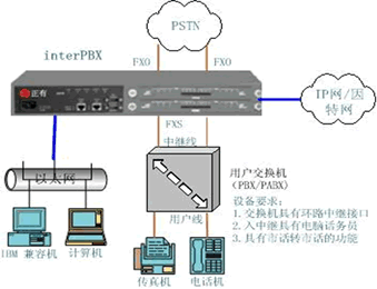 interPBX與用戶交換機(jī)PBX連接方式一: