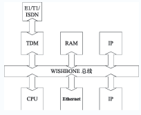 TDM控制模塊是VoIP網(wǎng)關(guān)系統(tǒng)設(shè)計中的重要部分,是連接來自PSTN(Public Switched TelephoneNetwork)串行的TDM數(shù)據(jù)格式和并行的Wishbone數(shù)據(jù)格式的橋梁,實現(xiàn)兩邊數(shù)據(jù)跨時鐘域無丟失的轉(zhuǎn)換。為滿足高速數(shù)據(jù)轉(zhuǎn)換的要求,采用了Wishbone總線,將多個IP核集成為VoIP網(wǎng)關(guān)系統(tǒng)。