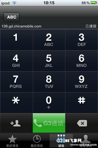 “G3通話”客戶端的用戶界面與iPhone撥號(hào)界面極為相似,并標(biāo)注有139.gd.chinamobile.com的網(wǎng)址,不過目前該網(wǎng)址無(wú)法進(jìn)入。該客戶端可提取系統(tǒng)自身聯(lián)系人列表,方便用戶撥打網(wǎng)絡(luò)電話。通話界面也與iOS4中的通話界面完全相同。