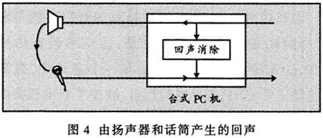 ——在IP電話的應(yīng)用中,人們?nèi)羰褂脫P聲器和麥克風(fēng)就可能出現(xiàn)回聲現(xiàn)象。如圖4所示。