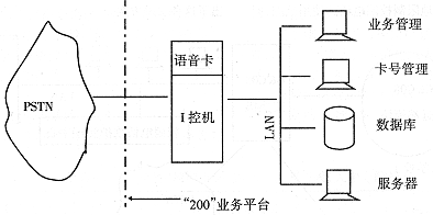 由于大多數(shù)“200”業(yè)務(wù)平臺(tái)采用的是上控機(jī)及語(yǔ)音卡系統(tǒng)(見圖1所示),由語(yǔ)音卡完成語(yǔ)音提示及交換處理,整體話務(wù)處理能力差,不太適合大中城市使用;另外其語(yǔ)音提示是經(jīng)過語(yǔ)音卡壓縮記錄在硬盤上,放音時(shí)經(jīng)讀盤、解壓恢復(fù)成語(yǔ)音信號(hào),處理速度慢,交換占用總線資源,在話務(wù)量大時(shí),易出現(xiàn)阻塞現(xiàn)象,并將影響現(xiàn)有的“200”業(yè)務(wù)。