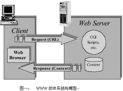 語(yǔ)音應(yīng)用協(xié)議的體系結(jié)構(gòu)類似于WWW的體系結(jié)構(gòu)和WAP的體系結(jié)構(gòu),圖一是WWW的體系結(jié)構(gòu):