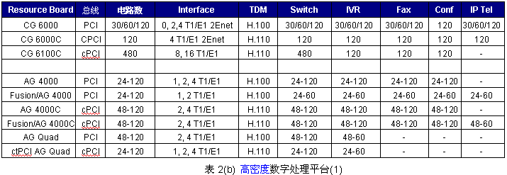 其中高密度模擬處理平臺包括的產(chǎn)品有:AG2000C,CX2000,CX2000C等,其特征如下表2。
