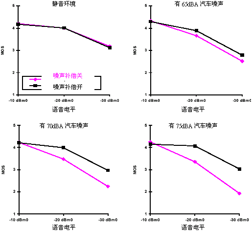 這種功能對消費者來說意味著什么呢?已經(jīng)進行了幾個研究,來確定這些功能對一般無線用戶的真正價值,以及測試他們是否確實注意到使用這些功能前后的差別。獨立地進行的Mean Opinion Score(MOS)測試顯示出:噪聲補償功能提高的語音質量有20%的用戶能感覺出來,特別是在非常吵雜的情況下而且發(fā)自PSTN側的話音電平又比較低的時候,噪聲電平通常以忙碌的街角為準。在一個安靜的環(huán)境中用戶意識不到有任何的影響。