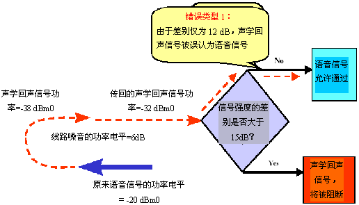 當通信鏈路的的另一端被設計為傳輸可變強度的信號時,"錯誤類型1"的影響會急劇增大。在這種情況下,根據(jù)功率電平的絕對差異來決定阻斷/允許信號的聲學回聲控制器會增大"錯誤類型1"出現(xiàn)的可能性。也就是說,使用絕對功率電平差異時,將聲學回聲信號誤認為有效語音信號的概率很大。