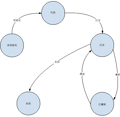 - 然后初始化DOM解析器,指定錯(cuò)誤處理程序,配置驗(yàn)證模式,此時(shí)進(jìn)入打開狀態(tài)。