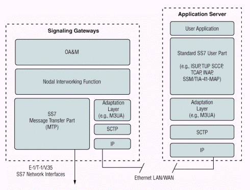 SCTP和應用層軟件,如MTP3用戶適配層 (M3UA),以及標準的七號信令用戶端軟件,如ISUP、移動應用部分 (MAP)、或者智能網(wǎng)應用部分