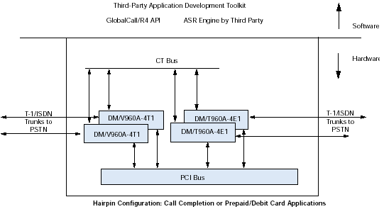 通過訪問計算機電話(CT)工業(yè)標準的ECTF H.100/H.110 CT Bus,利用DM/V-A多功能資源系列板卡,應用程序可以具備交換能力以及擴展到其他技術(shù)的能力,諸如網(wǎng)絡(luò)接口(DM/T或者DM/N系列),ATM連接,SS7,以及IP電話。