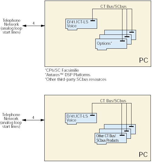 D/41JCT-LS板卡可以工作在包含Dialogic PCI和ISA產(chǎn)品的混合機(jī)箱中, D/41JCT-LS板卡的超前設(shè)計(jì)遵循新的H.100總線規(guī)范,并且能夠同下一代CT總線產(chǎn)品通信。D/41JCT-LS也可以通過選配部件CT總線/SC總線適配器與現(xiàn)存的SC總線產(chǎn)品相連。適配器提供同時(shí)連接D/41JCT-LS板卡和當(dāng)前SC總線產(chǎn)品的SC總線接頭和H.100物理接頭。