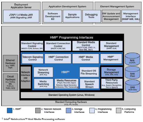 (HMP)軟件產品,用于在基于Dialogic構架之上的普通服務器上進行媒體處理任務,而無需專門的硬件支持。使用該軟件提供的媒體服務,能夠構建出靈活的、可擴充的、低成本的下一代IP媒體服務器。