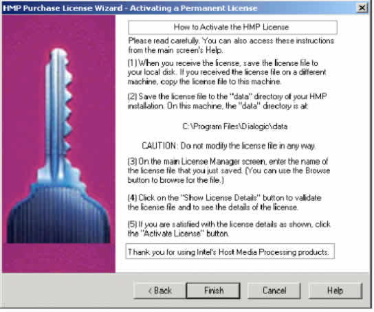 注: 該向導并不是自動產生一個許可證文件,而是說明如何從廠家購買一個許可證并激活它。
