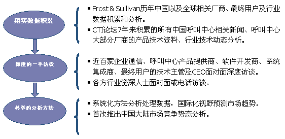 Frost & Sullivan 和 CTI論壇(www.1bearings.com)共同組成的調(diào)研小組,在查閱了大量資料的基礎(chǔ)之上,以企業(yè)通信及呼叫中心的設(shè)備應(yīng)用、投資計(jì)劃以及相關(guān)廠商的市場(chǎng)表現(xiàn)為出發(fā)點(diǎn),通過對(duì)企業(yè)通信及呼叫中心重要應(yīng)用企業(yè)、在市場(chǎng)占主導(dǎo)地位的二十多家設(shè)備廠商、二十多家軟件開發(fā)商、十幾家系統(tǒng)集成商、數(shù)家外包運(yùn)營商的深度訪談,參閱內(nèi)部相關(guān)報(bào)告及數(shù)據(jù)庫,對(duì)數(shù)據(jù)的來源和數(shù)據(jù)的準(zhǔn)確性進(jìn)行了詳細(xì)核對(duì)與論證;憑借參與調(diào)研人員的多年從業(yè)經(jīng)